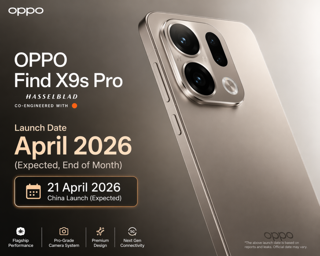 While the Oppo Find X9s Pro launch date has not been officially confirmed, strong leaks indicate that the device is likely to launch by late April 2026.